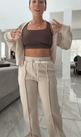 Designed for ultimate comfort with a polished, elevated finish, this fleece-lined two-piece set blends softness, warmth, and structure in the most flattering way. The fabric features a smooth, plush interior that keeps you cozy without feeling bulky, while the stitched seam detailing creates a clean, tailored look that instantly upgrades your everyday style.