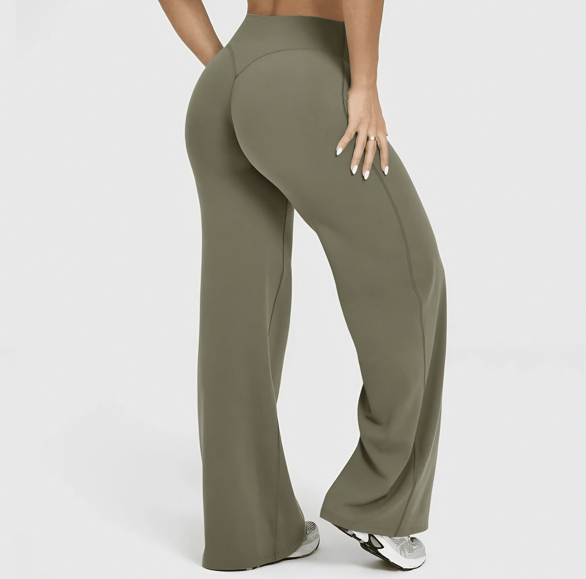 Designed to enhance your natural curves, these wide-leg pants feature a silky, ultra-stretch performance fabric that smooths, lifts, and flatters from every angle. The high-rise waistband sits comfortably without digging in, while the wide-leg silhouette creates a sleek, lengthened look that moves beautifully with your body.