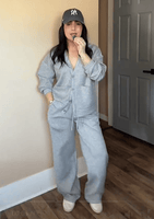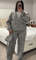 I’m so impressed with the quality of this set! It feels expensive without the crazy price tag. I wore it on a 4-hour road trip and was comfortable the entire time. The wide-leg pants are super flattering and the cardigan gives that effortless “cute but cozy” vibe. Definitely ordering another color!