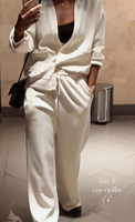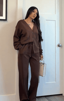 Designed to bring together effortless comfort and elevated everyday style, this lounge set features a silky-soft, breathable knit that drapes beautifully while keeping you comfortable in any season. The relaxed cardigan silhouette pairs with wide-leg trousers for a balanced, flattering look that feels as good as it appears. Soft stretch throughout allows the fabric to move with you — never tight, never restrictive.
