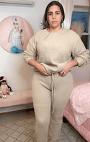 Designed to bring effortless comfort and everyday style to your fall and winter wardrobe, this two-piece knit set features a luxuriously soft, waffle-textured fabric that feels warm, plush, and gentle on the skin. The relaxed-fit top drapes naturally while the shape-hugging joggers contour your legs with a flattering, cozy finish — giving you the perfect blend of lounge comfort and elevated style.